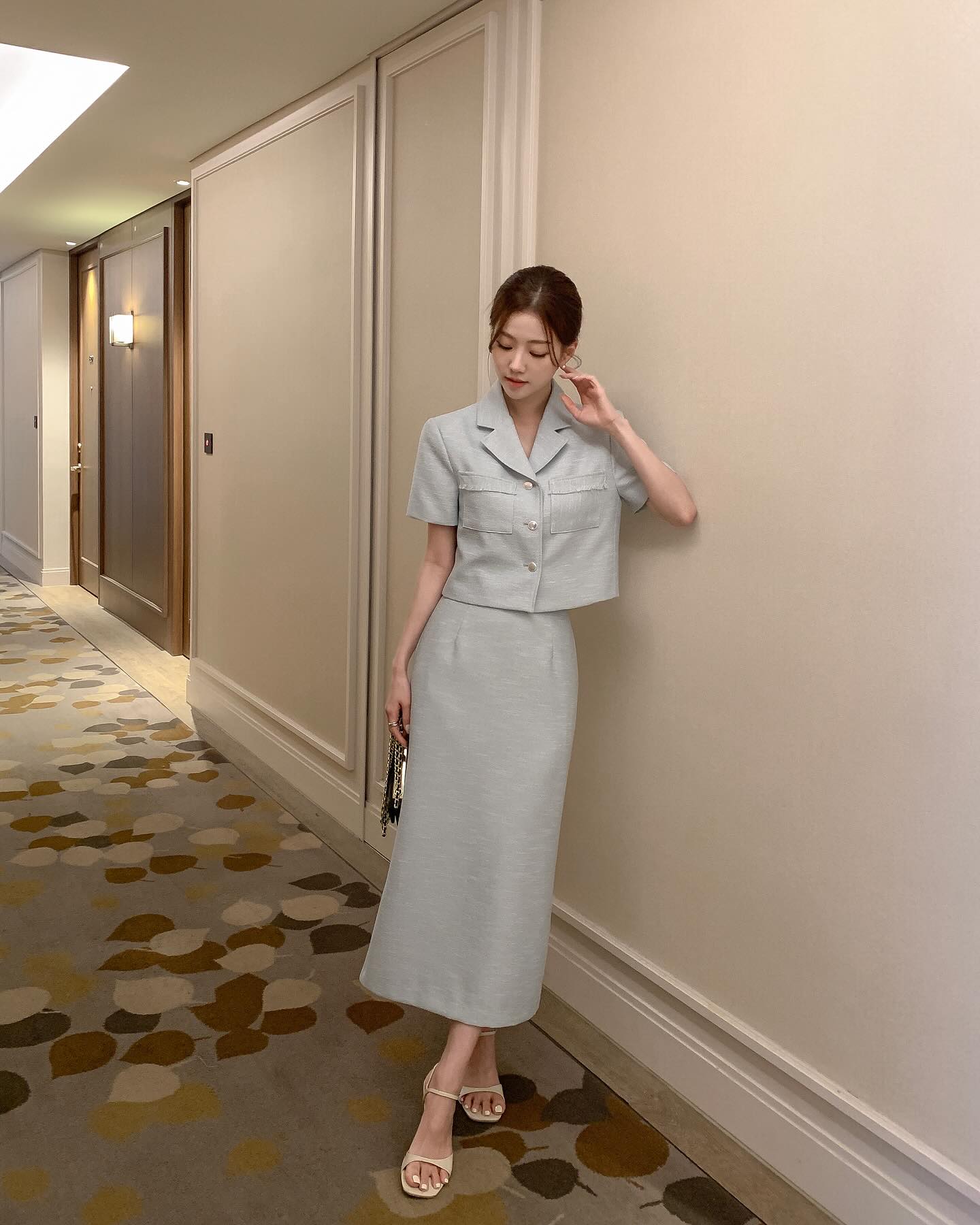 Không phải nàng nào cũng thích sơ vin, đặc biệt là trong thời tiết mùa hè, thao tác này có thể tạo cảm giác nóng bức, bất tiện. Dẫu vậy, các nàng vẫn có cách để tôn dáng cao ráo mà không cần phải sơ vin. Cụ thể, các nàng hãy kết hợp chân váy dài với áo lửng. Công thức này tạo cảm giác chân dài hơn và "hack" dáng tối ưu. Bộ đôi áo lửng và chân váy dài còn toát lên nét trẻ trung, phóng khoáng nhưng cũng không kém phần nữ tính, dịu dàng.