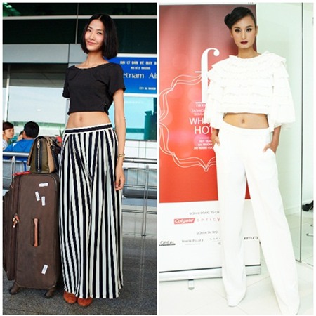 Quán quân cùng Á quân Next Top Model 2011 cũng khéo khoe lợi thế cơ thể cùng Crop top và quần ống rộng đầy phong cách