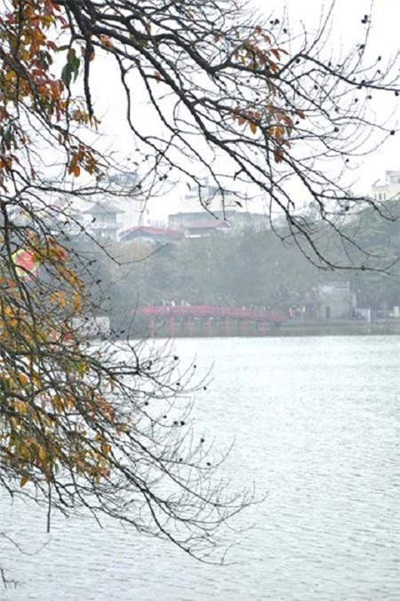 Màu sơn son đỏ nổi bật trên nền nước hồ Gươm xanh biếc - Cầu Thê Húc vẫn nằm đó dịu dàng mà mạnh mẽ chứng kiến bao thăng trầm của thủ đô Hà Nội.