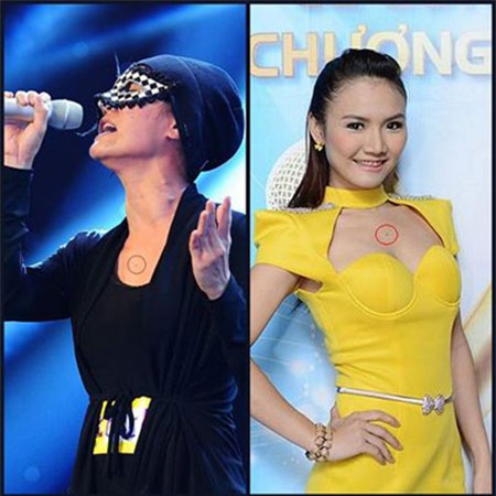 2. Huyền Minh và Anh Thúy đều có nốt ruồi trên ngực ở cùng 1 vị trí. Đây được coi là sự trùng hợp quá hi hữu.