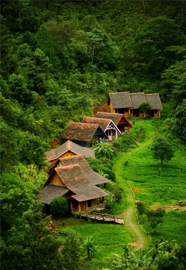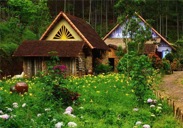Những mái nhà bình yên nép mình trong không gian đầy hoa cỏ. - Ảnh: ivivu
