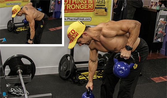 Tư thế chuẩn bị giống như động tác deadlift và 2 tay cần 2 tạ đơn. Sau đó lưng xiên về phía trước đồng thời tay trái kéo tạ lên sát người, sau đó hạ tạ xuống và tay phải kéo tạ. Thực hiện trong 3 hiệp, mỗi tay nâng 4-6 lần trong 1 hiệp.