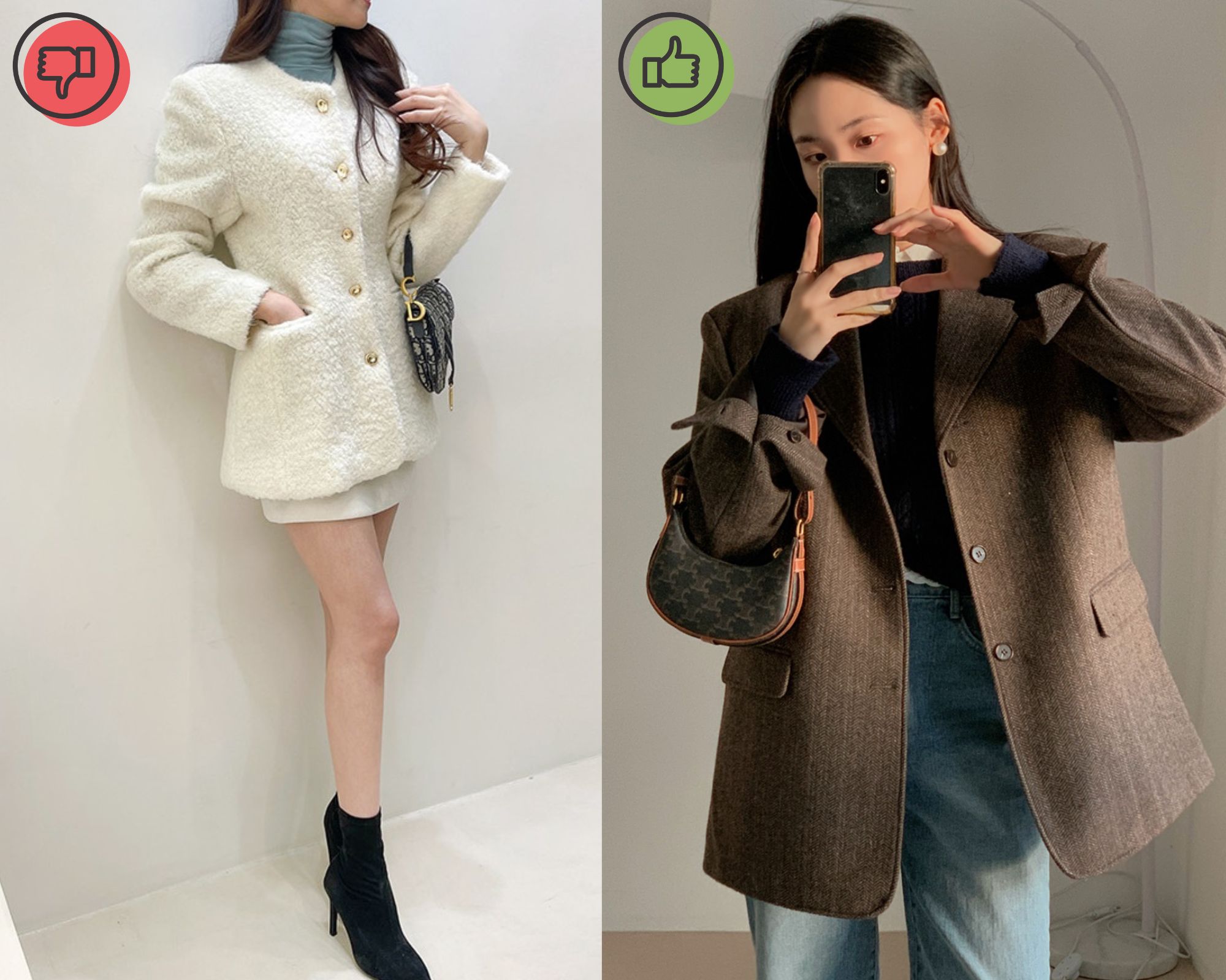 Các mẫu áo khoác chiết eo tuy gọn gàng, nữ tính, nhưng đã không còn chuẩn mốt. Khi diện kiểu áo khoác này, vẻ ngoài của chị em sẽ không có được nét hiện đại, trẻ trung. Xu hướng bây giờ là áo khoác oversized, mặc lên trẻ trung và không kém phần sang trọng. Ngoài ra, áo khoác oversized cũng không kén dáng, nàng nào cũng có thể mặc đẹp. Một số kiểu áo khoác dáng oversized đáng sắm bao gồm: áo blazer, áo trench coat, áo dạ dáng dài… Những mẫu áo khoác này là "bảo chứng" cho vẻ ngoài thanh lịch, tinh tế.
