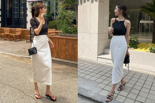 Chân váy suông còn ghi điểm ở sự thanh lịch nhưng không kém phần trẻ trung, hiện đại. Chị em có thể diện chân váy suông đi dạo phố hoặc mặc tới công sở. Các mẫu chân váy suông màu trung tính là lựa chọn lý tưởng nhất vì dễ phối đồ và giúp các nàng ghi điểm tinh tế, sang trọng.