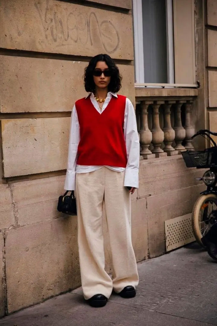 Diện 1 chiếc gile len cùng sơ mi và quần dáng suông sẽ khiến bạn trông vừa trẻ trung, vừa năng động mà vẫn rất ấm áp và phù hợp với môi trường công sở.