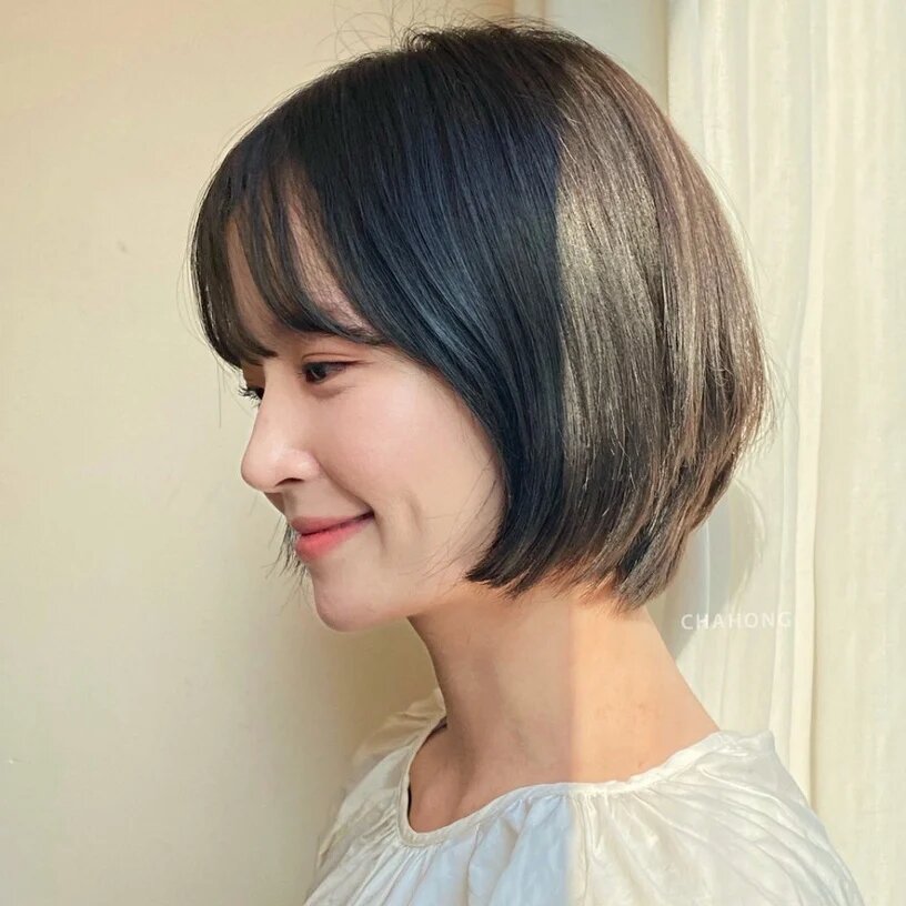 Baby cut - tóc bob mái ngang tựa như kiểu tóc của trẻ em dần hot trở lại vào mùa đông năm ngoái và đến giờ nó vẫn giữ nguyên sức hút. Kiểu tóc này có phom ôm nhẹ vào mặt, giúp đầu nhìn tròn và gương mặt dễ thương hơn. Phần đuôi tóc ôm vào mặt tạo cảm giác mặt nhỏ và đáng yêu, giúp ngũ quan trở nên dịu dàng, ngọt ngào