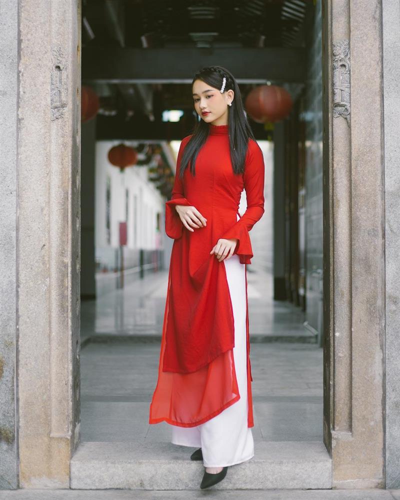 Đơn giản nhưng luôn đúng chính là để tóc xõa khi diện áo dài. Chị em có thể uốn xoăn, để thẳng hoặc kẹp một chiếc cặp tóc xinh xinh nhưng kiểu gì, mái tóc xõa cũng sẽ giúp chị em có được vẻ ngoài cực kỳ duyên dáng, nữ tính và bay bổng. Mái tóc xõa cũng là ý tưởng phù hợp với tất cả mọi người, bạn mà áp dụng thì yên tâm là sẽ không sợ bị sến hay lòe loẹt quá.