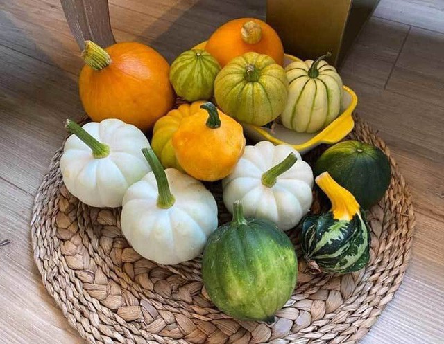 Theo người bán, đây là bí baby có nguồn gốc từ nước ngoài. Vài năm trở lại đây, loại bí này được du nhập về Việt Nam và trồng làm bí cảnh. Ảnh: Giadinhnet.
