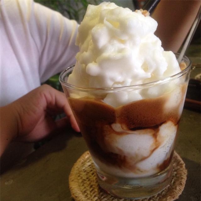 Sài Gòn hẹn bạn đi chơi tức là đi ăn rồi... ngồi cafe. Ngoài cà phê iceblended, capuccino, latte, thời gian này món cà phê dừa đang gây mưa, tạo bão trong giới trẻ Sài Gòn. Mỗi ly cà phê cốt dừa nhìn như một núi tuyệt nhỏ với cà phê bao quanh. Nhâm nhi ly cà phê cốt dừa, bạn sẽ cảm nhận được vị sữa dừa béo ngậy, đến vị cafe thơm đắng tan trên đầu lưỡi.