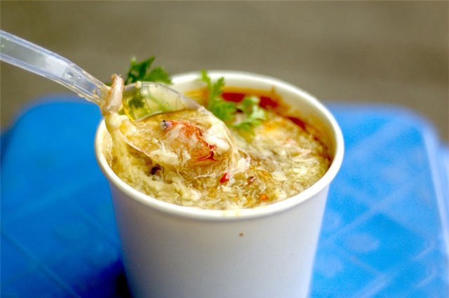 Súp cua ở Sài Gòn có thể ăn trong bát nhỏ hoặc múc vào ly cho những