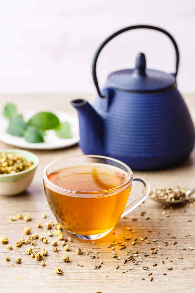Tráng nước sôi cho trà xanh, hoa cúc và hạt hoa tiểu hồi. Sau đó đổ 430ml nước sôi vào, ủ trà trong 5 phút sau đó lọc lấy nước rồi hòa thêm mật ong nếu muốn.