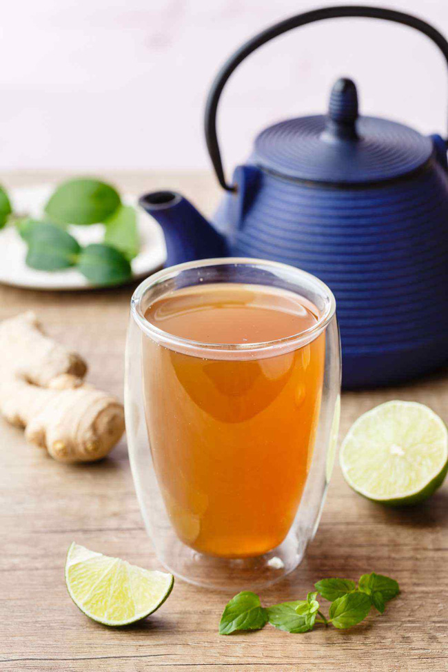 Cho trà xanh, bạc hà, gừng thái lát vào ly, đổ nước nóng vào. Ủ trà 5 phút sau đó lọc lấy nước trà hòa nước cốt chanh và mật ong rồi thưởng thức.