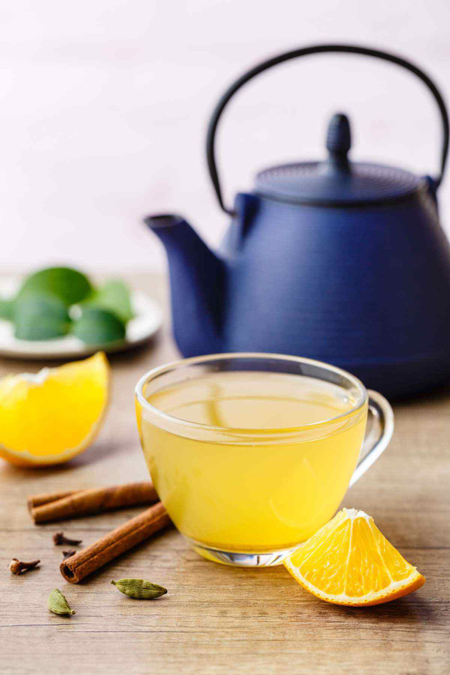 Trà xanh kết hợp với vỏ cam, bạch đậu khấu, gừng, quế và đinh hương