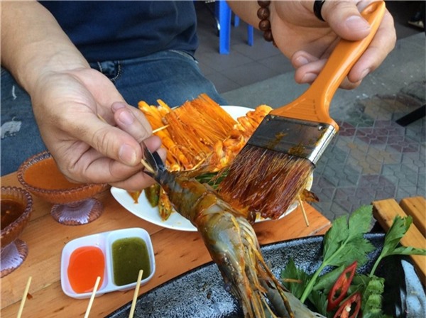 Quét nước sốt đều lên hải sản hoặc rau củ như thế này…