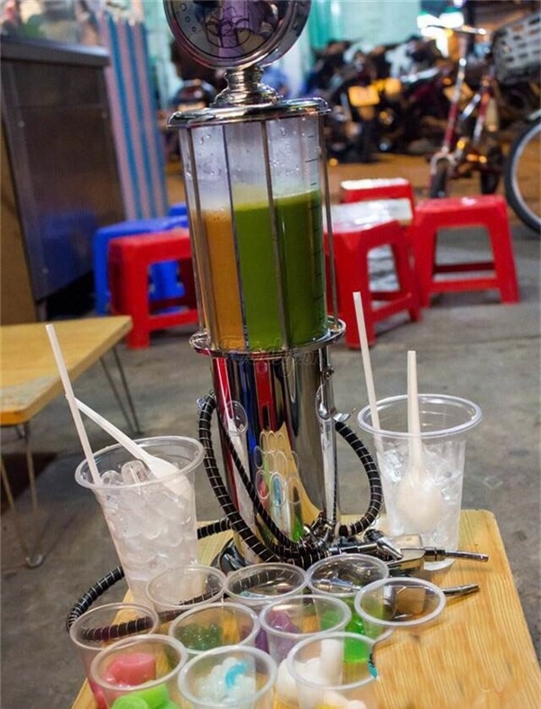 Chúng ta đã quá quen với các tháp bia trong quán bar, pub, vậy thì sao không “lành mạnh” một chút với tháp… trà sữa? Tháp trà sữa 1 lít này còn được kèm theo các loại thạch sần sật, đủ cho một buổi tối vừa “tám” với bạn bè vừa nhấm nháp một món uống mát lạnh, xua tan cái nóng của Sài Gòn.