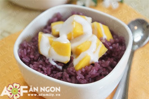 Hầu hết các món xôi, chè, bánh ngọt đều có nước cốt dừa là phần nguyên liệu không thể thiếu. Vì thế món xôi xoài lá cẩm này cũng tuân thủ đúng quy tắc nhất định phải có nước cốt dừa. Xôi lá cẩm dẻo thơm, màu sắc hấp dẫn kết hợp với xoài chín ngọt đậm đà cùng nước cốt dừa béo ngậy tạo nên sự hài hòa của món ăn cả về màu sắc lẫn hương vị. Mặc dù xôi không dùng đường hay món mặn kèm theo nhưng vị béo ngậy của nước cốt dừa và vị ngọt đậm đà của xoài chín lại tạo cho bạn cảm giác rất vừa miệng.