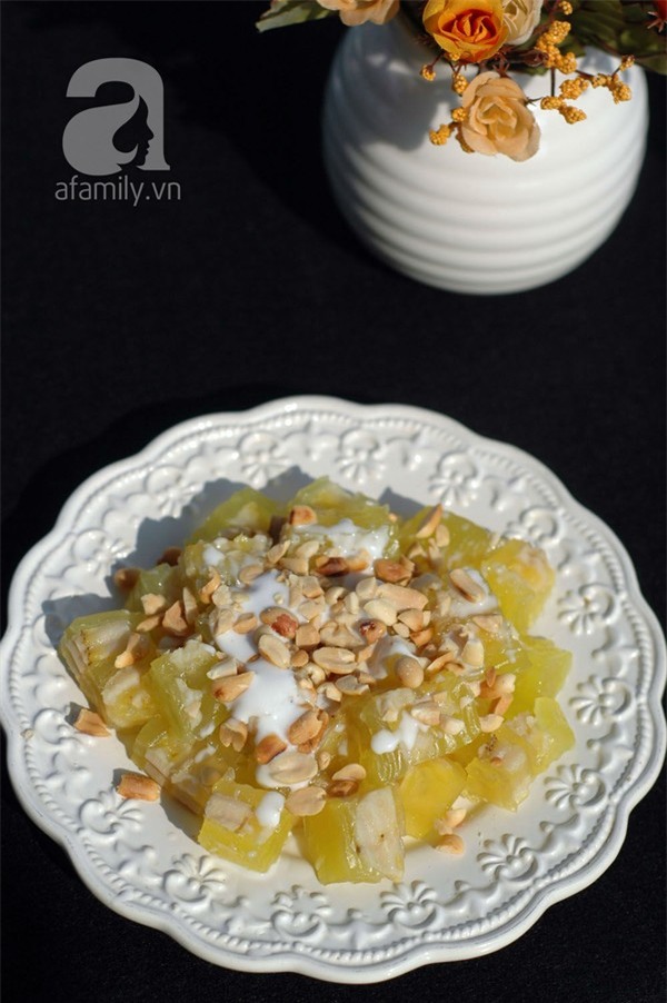 - Lạc rang, nước cốt dừa, vài giọt phẩm màu vàng (nếu thích)