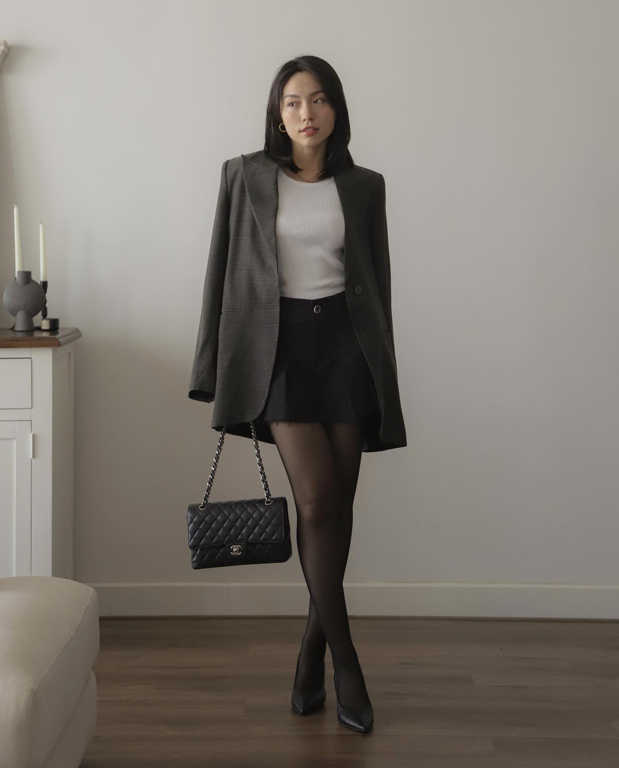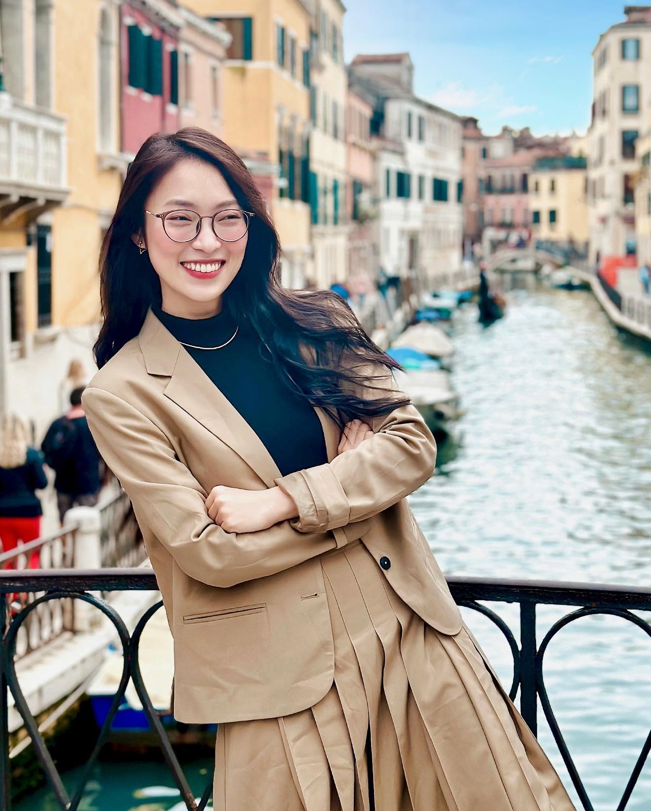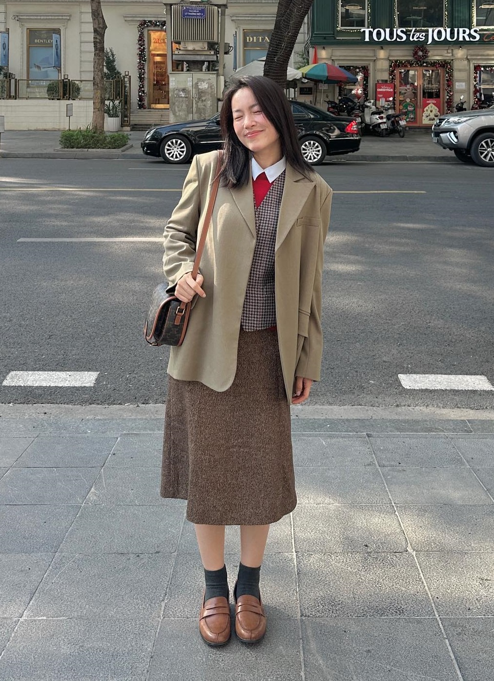 Ngoài ra, Lê Hà Trúc còn tôn dáng khéo léo bằng cách sơ vin bộ đôi áo và quần bên trong hoặc diện áo dáng lửng với blazer thanh lịch. Để hoàn thiện các set blazer chuẩn đẹp, Hà Trúc thường chọn những mẫu giày thời thượng như sandal cao gót, giày mule, loafer hoặc giày mũi nhọn.