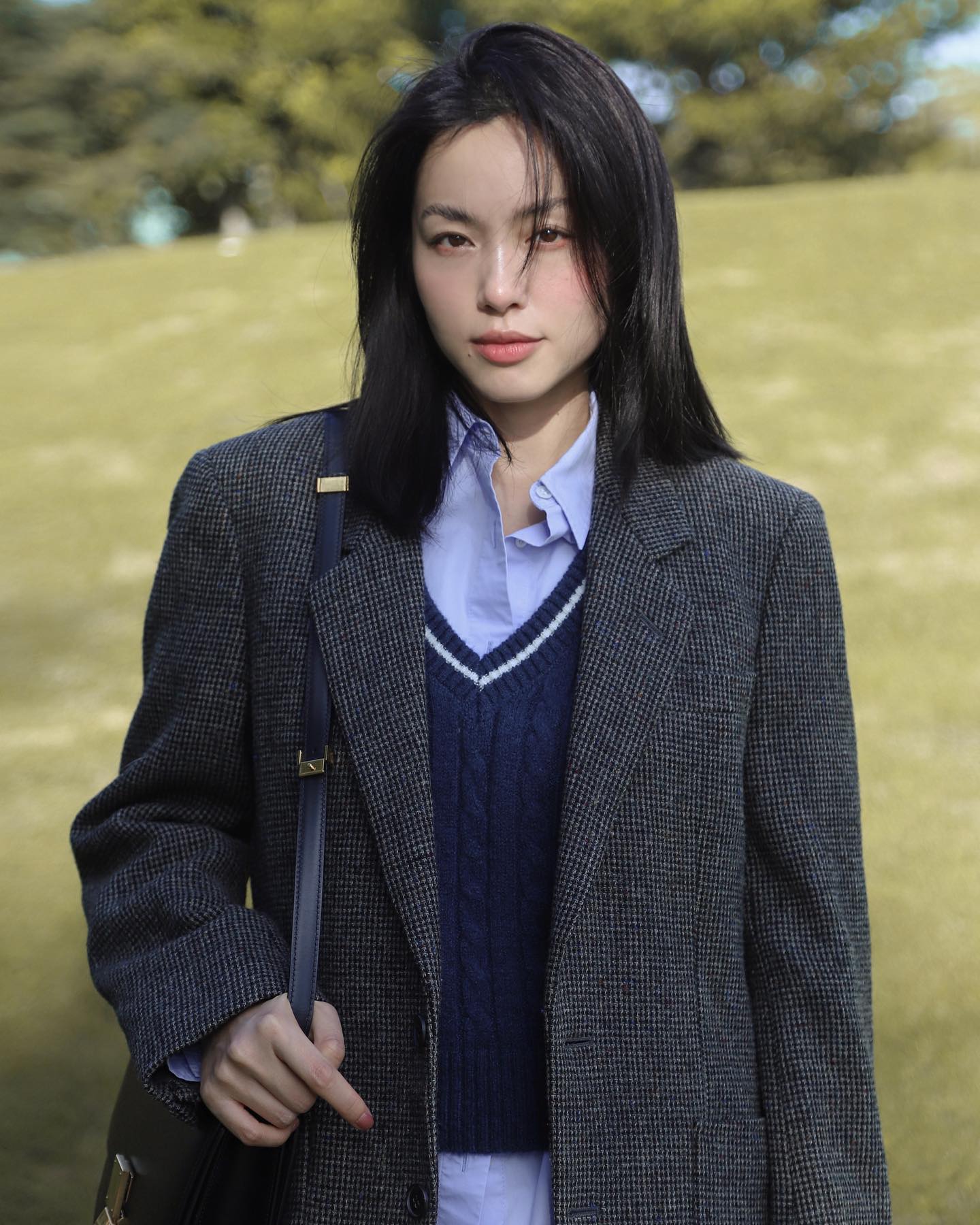 Phong cách diện blazer của Phạm Thanh Hằng có sự đa dạng. Nữ diễn viên kiêm siêu mẫu đình đám biến hóa từ blazer đen, trắng cơ bản cho đến blazer màu pastel, blazer kẻ nổi bật. Đối với mỗi kiểu blazer, Phạm Thanh Hằng đều có những cách phối đồ khéo léo để có được vẻ ngoài hài hòa, trẻ trung.