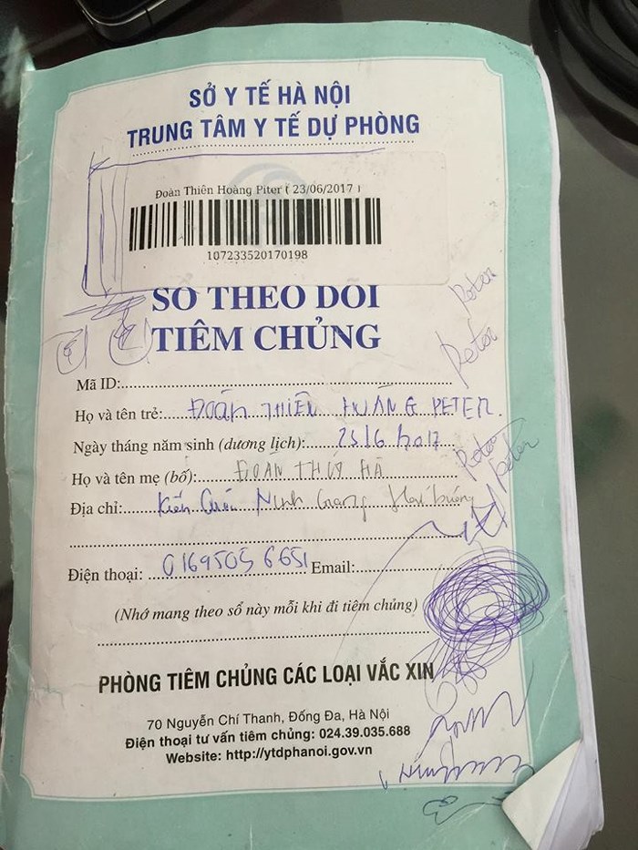 Sổ tiêm chủng ghi tên con trai của Đoàn Thúy Hà bị vẽ nguệch ngoạc
