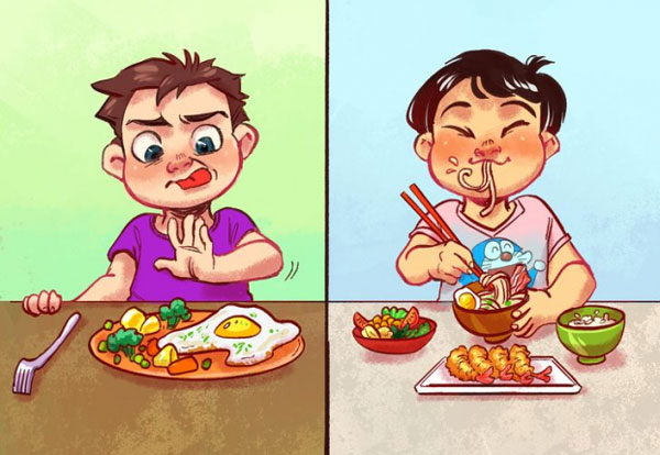 Trẻ em rất dễ chán khi ăn cùng một loại thực phẩm, và thói quen ăn uống của trẻ cũng thường xuyên thay đổi. Vì vậy lời khuyên dành cho các ông bố bà mẹ đang trong hành trình chăm con nhỏ là hãy chế biến bữa ăn thật đa dạng để trẻ làm quen với các mùi vị thức ăn khác nhau. Vì lúc này khẩu vị của trẻ cũng đang như tờ giấy trắng. Bố mẹ hoàn toàn có giúp con làm quen với nhiều loại thực phẩm, gia vị mà nhiều người lớn cũng cảm thấy khó ăn như mướp đắng hay hành, tỏi trong giai đoạn này.