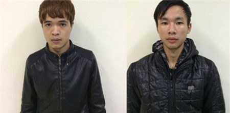 Hai đối tượng Bùi Phát Hiến và Hà Mạnh Thành tại cơ quan công an (ảnh do cơ quan công an cung cấp) |