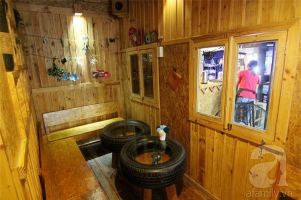 vào vừa phải, ấm cúng. Tuy nhiên cùng với bàn ghế gỗ, chủ quán còn tận