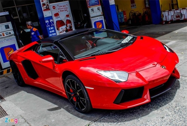 | Aventador Roadster trong một lần đi đổ xăng ở Sài Gòn. Ảnh: TNTBros. |