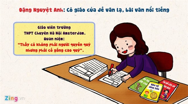 Cô Đặng Nguyệt Anh được biết đến là giáo viên gắn với những bài văn như Nghĩ về đồng tiền, Ba ngày làm chuột, Thư gửi lãnh đạo Trung Quốc...