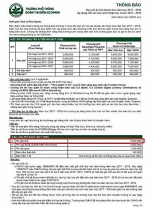 Cụ thể, mới đây, trong thông báo về học phí và các khoản thu năm học 2017 – 2018 áp dụng đối với học sinh nhập học trước 2017 – 2018, trường phổ thông Đoàn Thị Điểm Ecopark đã đưa vào khoản thu "giữ chỗ" với mức tiền 5 triệu đồng.