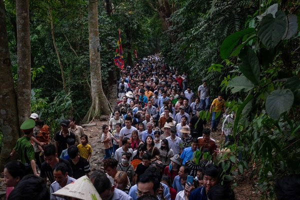 Do người quá đông, hiện tượng ùn tắc cục bộ, lực lượng công an đã bố trí lực lượng tại nhiều vị trí, lập hàng rào mềm để đảm bảo an toàn cho du khách và tình hình an ninh trật tự.