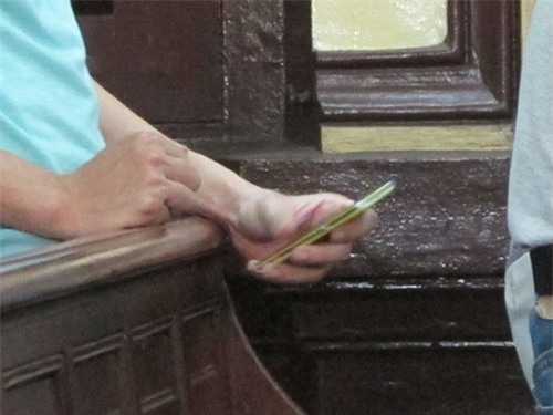 Trong lúc hội đồng xét xử TAND TP HCM tuyên án, nhiều bị cáo trong vụ án được tại ngoại và đứng phía dưới đã “cả gan” dùng điện thoại, lướt nét. Hành vi này gây phản cảm khiến nhiều người bức xúc phải báo lực lượng bảo vệ phiên tòa đến nhắc nhở.