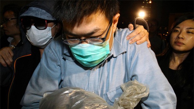 Tên sát nhân Lam Kor-wan bị cảnh sát áp giải.