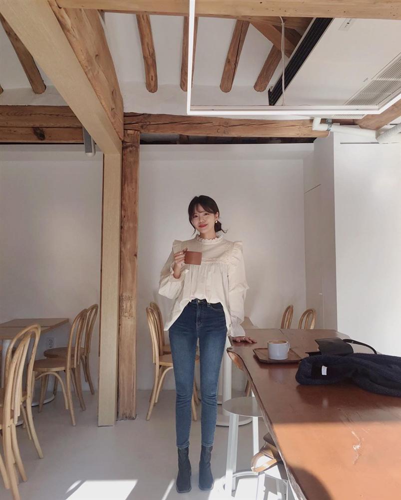 Quần jeans cá tính, bụi bặm nhưng bạn không nhất thiết phải mix item này với một món đồ có "cùng sóng". Trong năm 2019 vừa qua, nhiều quý cô sành điệu lại thích bắt cặp quần jeans với chiếc áo blouse điệu một chút, hoa hòe một xíu hơn. Sự kết hợp này rất xinh tươi, yêu kiều nhưng độ trẻ trung, sành điệu cũng là điều chẳng thể phủ nhận.