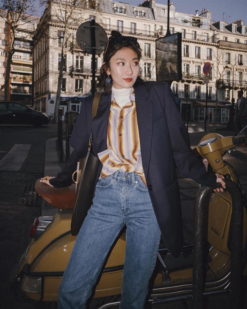 Không khó để bạn bắt gặp các chị em diện công thức áo blazer + quần jeans đi làm. Bộ đôi này thanh lịch vừa đủ, và gây ấn tượng ở nét trẻ trung, cá tính. Điều thú vị là chỉ cần biến hóa với những phiên bản quần jeans khác nhau, chẳng hạn như: quần jeans trắng, đen, quần jeans xanh ống rộng, ống đứng, bạn đã có được những set đồ với phong cách không trùng lặp.