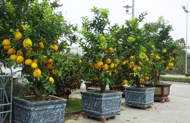 Theo ghi nhận của PV. VietNamNet, các tuyến phố ở TP. Thanh Hóa tiểu thương đã tấp nập trưng bày các loại cây cảnh để bán Tết. Trong số các loại cây cảnh như: đào, quất, cam, bưởi,... thì bưởi cảnh chiếm phần nhiều. Giá mỗi cây bưởi cảnh dao động từ 3 triệu đến 30 triệu đồng, có những gốc cây đặc biệt được phát giá tới 50 triệu đồng.