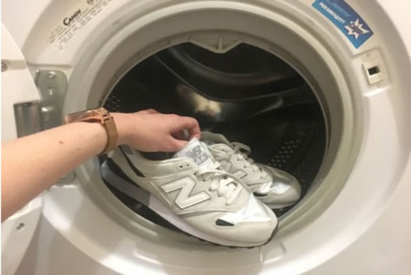 Bạn nên dùng nước giặt giày thay cho bột giặt. Giày nên giặt ở chế độ đặc biệt với nhiệt độ không quá 30 độ C.