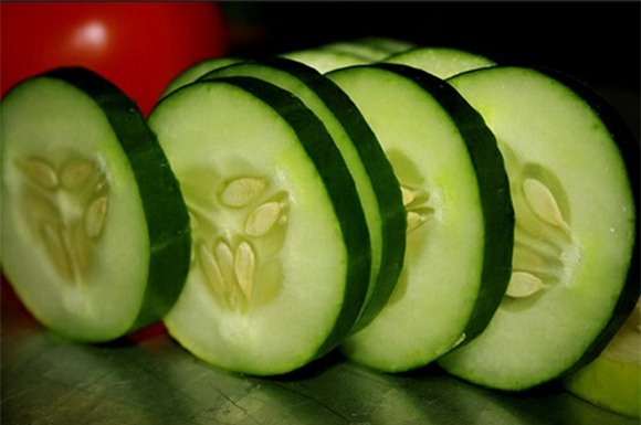 - Cắt dưa chuột thành từng lát mỏng, cho vào tủ lạnh khoảng 30 phút. Sau đó lấy ra, đặt lát dưa chuột này lên vùng da bị thâm khoảng 10 phút. Lặp lại khoảng 2 lần một ngày, bạn sẽ thấy hiệu quả rõ rệt.