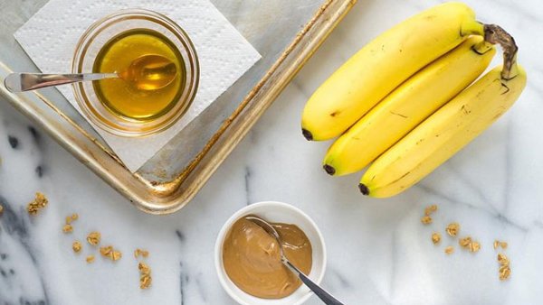 - Chuối sau khi mua về đem bóc vỏ, cắt thành miếng nhỏ rồi dầm hoặc xay nhuyễn trong một chiếc bát. Cho chỗ mật ong đã chuẩn bị vào bát chuối rồi trộn đều lên.