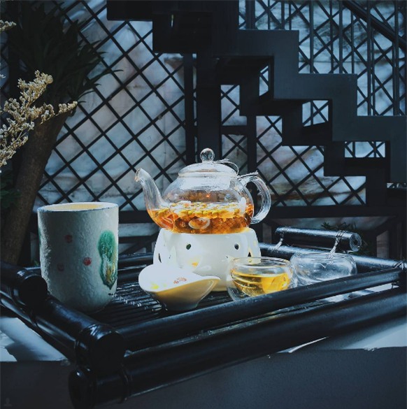 Trà thơm, bánh ổn, không gian đơn giản, phục vụ nhiệt tình và có thể “lẩn trốn qua đêm" để làm việc hay tâm tình với bạn bè những ngày nặng lòng. Trà bánh tại quán bán theo set trà riêng và bánh riêng, giá trà theo set tầm 135.000đ/ phần/2 người, bánh ngọt từ 45.000đ/phần
