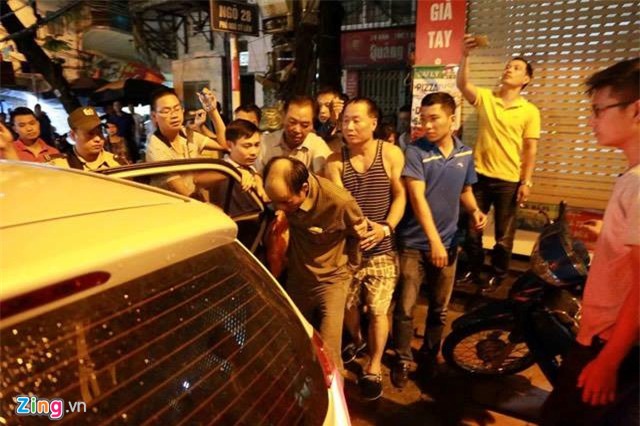 Mất thêm nửa giờ thuyết phục, người đàn ông 47 tuổi đồng ý nói chuyện điện thoại với chỉ huy Công an quận Đống Đa. Anh ta rời nơi cố thủ, theo cảnh sát lên ôtô sau khi yêu cầu đầu thú được vị lãnh đạo chấp thuận.