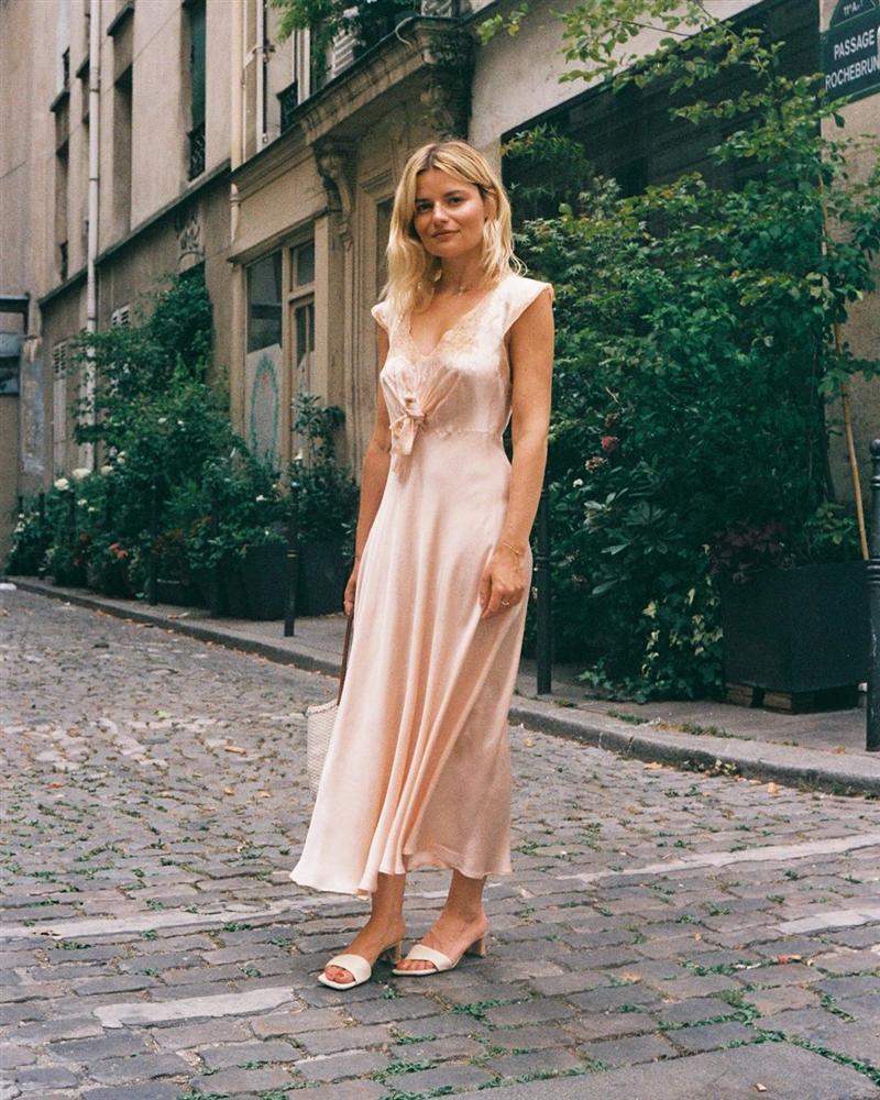 Chân váy lụa, váy hai dây hay váy tay bồng mang chất liệu vải lụa đều có thể mang đến cho người diện vẻ ngoài sang xịn, nữ tính và cũng rất gợi cảm. Chẳng những thế mà Hè nào, chúng ta cũng thấy các quý cô người Pháp nhiệt tình hoàn thiện phong cách với những items vải lụa nhẹ tênh, bay bổng.