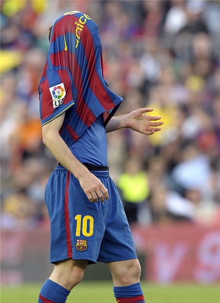 một lần ngẫu hứng, Messi đã kéo áo đấu chum lên đầu, tạo nên hình ảnh