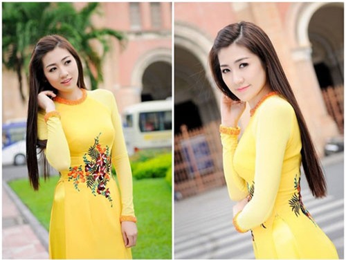 Kiểu tóc này sẽ phát huy hiệu quả thẩm mỹ hơn nữa khi kết hợp với những kiểu áo dài hoa trẻ trung, màu sắc.
