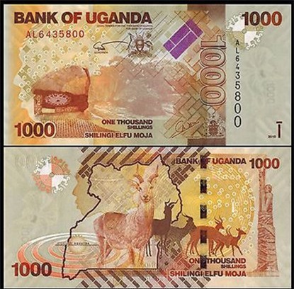 Tờ tiền có chú dê tiếp theo gây chú ý là tiền dê Uganda. Kích thước tương đương với tờ tiền 20.000 đồng Việt Nam, in hình 6 Sơn Dương, thiết kế tờ tiền được đánh giá đặc biệt ấn tượng và đẹp mắt. Chính vì vậy, đây cũng là một trong số loại tiền thường xuyên rơi vào tình trạng “cháy hàng”.