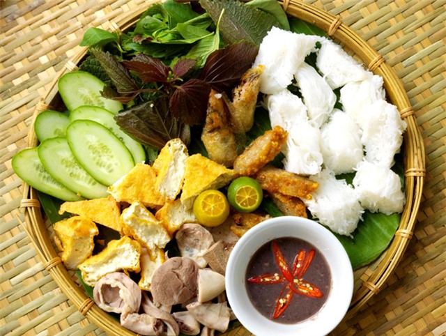 béo ngoài giòn, những lá bún trắng mịn cắt lát vừa ăn kèm theo đủ loại