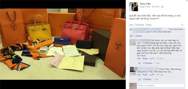 Hermes giá hàng trăm triệu mỗi chiếc. Việc phô bày "quà tết" xếp cạnh