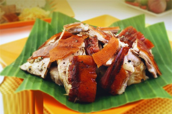 Lechon - thịt lợn nướng nguyên con là một món ăn không thể thiếu ở Philippines, đặc biệt là trong các mùa lễ hội và Giáng Sinh. Khi thưởng thức món này, bạn sẽ thấy vị đậm đà và ngọt đậm của thịt tươi nóng trên than, đặc biệt là lớp da giòn tan, thơm phức, béo ngậy. Ngon nhất của món ăn này có lẽ là lớp da lợn giòn tan. Tỉnh Cebu được coi là nơi sở hữu công thức lechon ngon nhất Philippines.