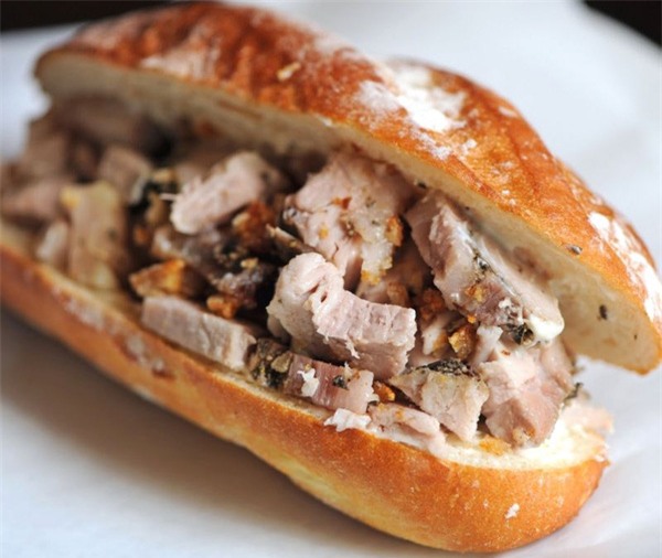 Món thịt lợn quay nổi tiếng của Ý được chế biến bằng cách nướng thành tảng lớn. Panino Con Porchetta được tẩm ướp khéo léo các loại thảo mộc, quay chín vàng đều lớp bì, có mùi thơm nức và vị ngọt tươi của thịt. Món này không hề khó tìm trên mọi đường phố của nước Ý.