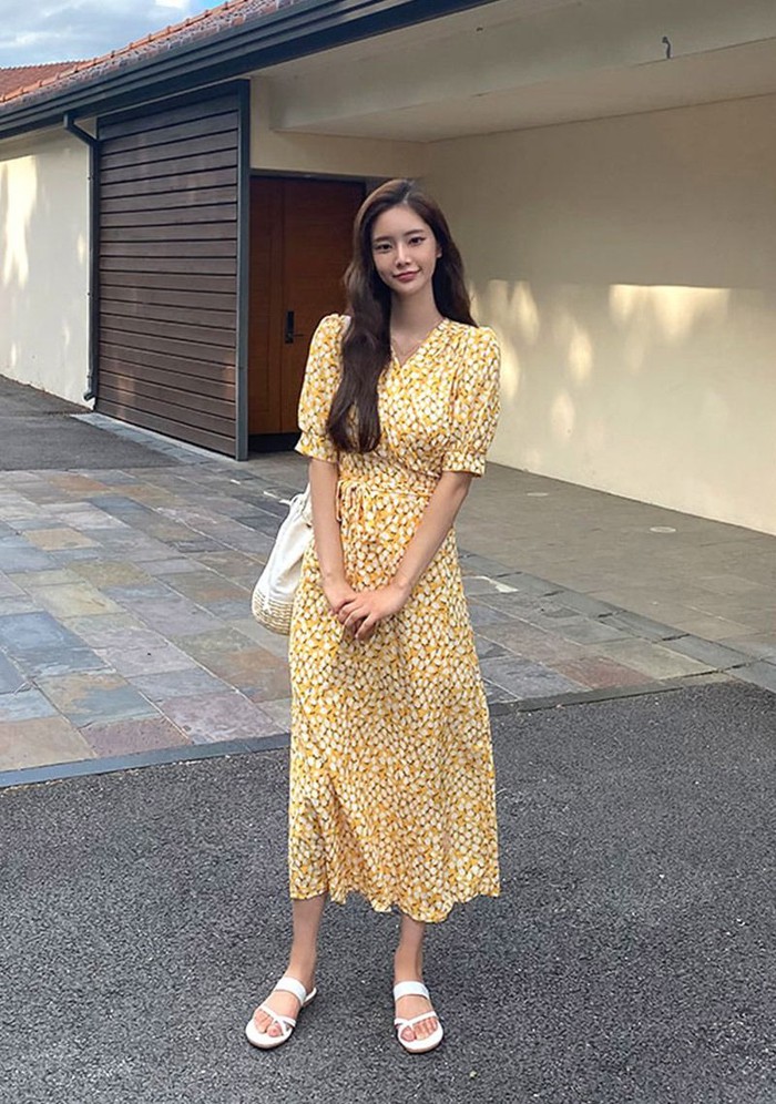 Mùa hè là thời điểm để váy hoa nhí lên ngôi. Chính vì vậy, sẽ thật thiếu sót nếu tủ đồ đi làm của bạn thiếu đi item này. Khi chọn váy hoa, chị em nên mua những chiếc váy có hoạ tiết nhỏ và màu sắc nhẹ nhàng, nhã nhặn. Nếu chọn váy quá loè loẹt hay chi tiết quá to thì có thể khiến vẻ ngoài của bạn thêm già nua, quê kiểng.